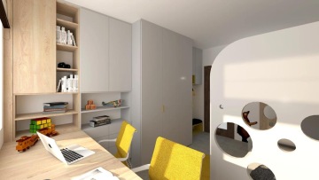 Ondrášek a Adélka potřebují komfortní postele, úložné prostory na oblečení a na hračky, psací stůl s židlemi, knihovnu a věšák na oblečení.