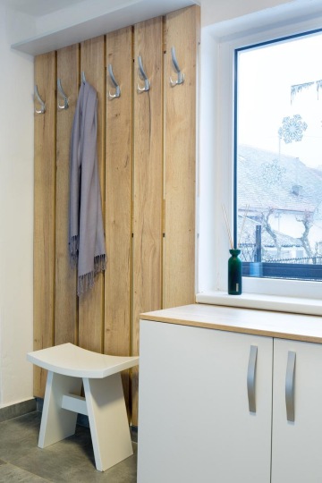 Klientka chtěla ponechat klenuté otvory a křivky, které zanechají v interiéru ráz statku.